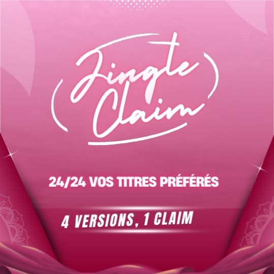Jingle Claim Volume 3 contient 1 claim chanté en Français pour formats généraliste et adulte. Vous pouvez choisir le jingle avec claim seul « 24 heures sur 24 vos titres préférés » ( 4 versions livrées) , ou opter pour une des deux options de personnalisations (5 versions livrées) :